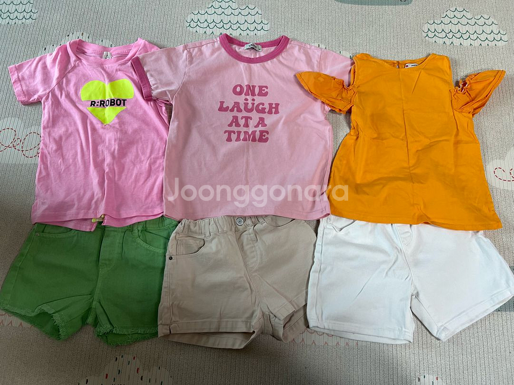 개인정보(거래정보)를 주고받는 행위는 사기에 노출될 수 있으므로 즉시 중고나라로 신고해 주세요래핑차일드&알로봇 옷입니다 핑크 티 하나에 얼룩이 있어요 그거 외엔 고지할 사항 없습니다 ~