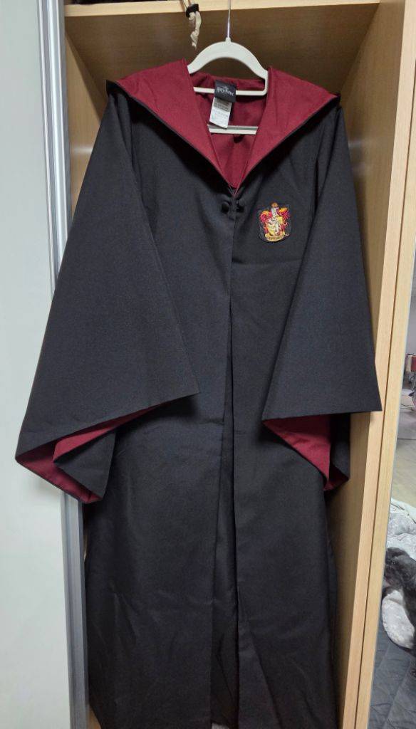 일본 해리포터 스튜디오 갈때 필수품, 해리포터 그리핀도르 망토와 머플러 세트예요. 저렴한 망토와 차원이 다르구요. 안입고 가심 정말 후회하고 가서 사기엔 넘 비싸요. 망토, 머플러 둘다 정품입니다. XS 사이즈로 155-160cm 라고 써있는데 159 제가 입으면 망토 딱 바닥까지 오구요. 신발 신어야 바닥 안끄니까 바닥 끄는거 싫은 분들은 제 키 참고해서 구매하세요. 망토 85000 망토 25000