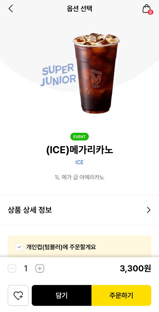개인정보(거래정보)를 주고받는 행위는 사기에 노출될 수 있으므로 즉시 중고나라로 신고해 주세요메가커피 1L짜리 메가리카노 (큰 아메리카노) 3300원인데 2900에 팔아요 수량/픽업 할 지점 적어서 연락주세요