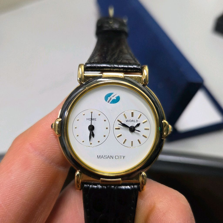 개인정보(거래정보)를 주고받는 행위는 사기에 노출될 수 있으므로 즉시 중고나라로 신고해 주세요마산시 기념으로 나온 듀얼 타임 가죽 시계예요 두 개의 시계판으로 시간을 두 곳에서 확인할 수 있어요 깔끔한 디자인으로 어떤 옷에도 잘 어울려요 소중한 분께 선물하기 좋은 아이템이랍니다 건전지는 넣으셔야 해요.