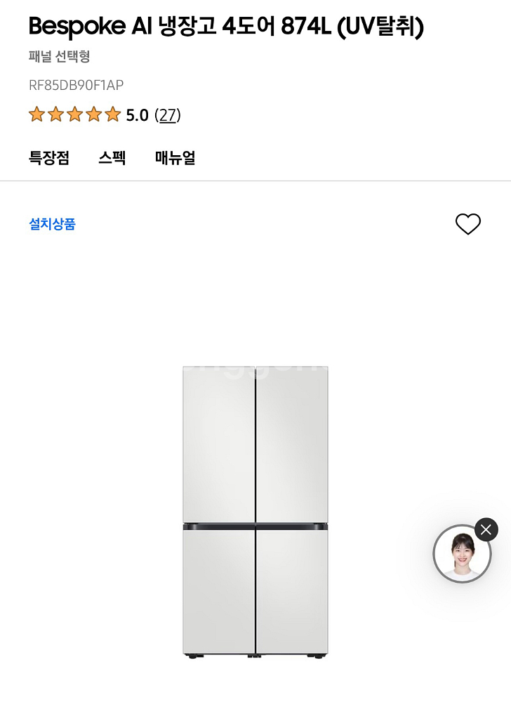 삼성 비스포크 AI 냉장고 4도어 874L (UV탈취) 판매해요 패널 선택형이고 RF85DB90F1AP 모델이에요 UV탈취 기능이 있어서 위생적으로 사용할 수 있어요 사진에 보이는 그대로 깨끗한 상태입니다 상단 세틴화이트 / 하단 세틴베이지 입니다 찍힘이나 이염없습니다 예뻐요 실사용 1년입니다 직접 가져가셔야해요