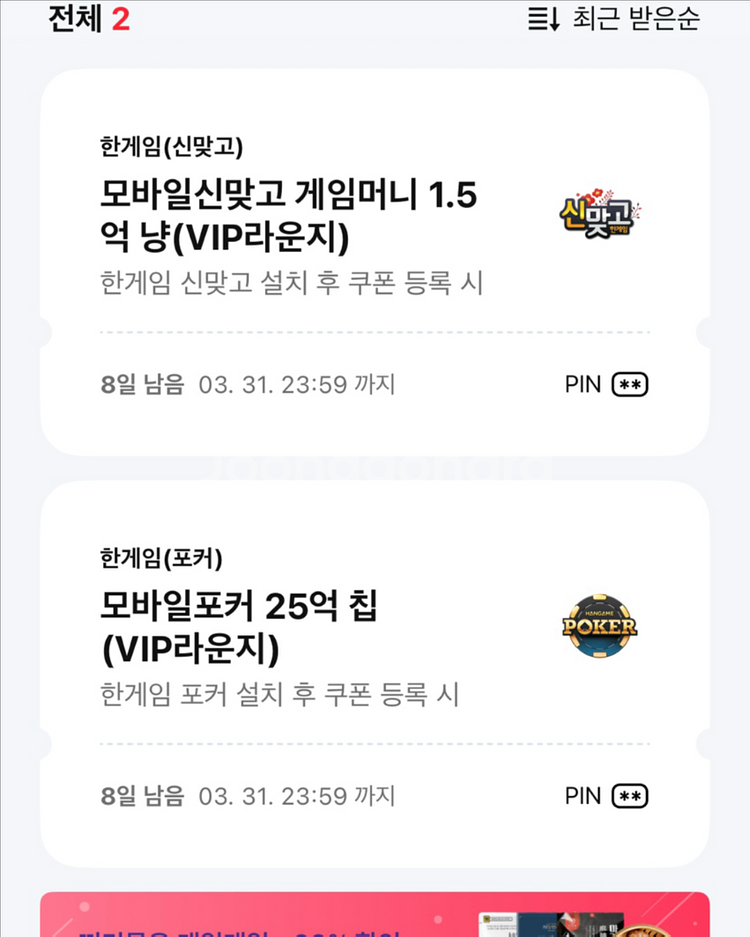 페이코 한게임 쿠폰 신맞고, 포커 일괄