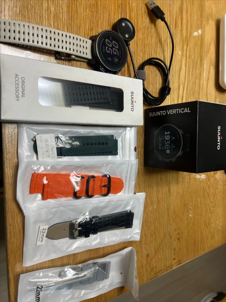 순토 버티컬 티타늄 솔라 스마트워치입니다 - 사파이어 크리스탈 글래스를 사용하여 내구성이 좋습니다 - 티타늄 소재로 가볍고 튼튼합니다 - 다양한 스트랩이 포함되어 있습니다 - 기본 블랙 정품 밴드는 미사용입니다. - 샌드색 정품밴드는 사용감이 많습니다. - 번들 정품충전기는 미사용이고, 호환충전기 포함입니다.