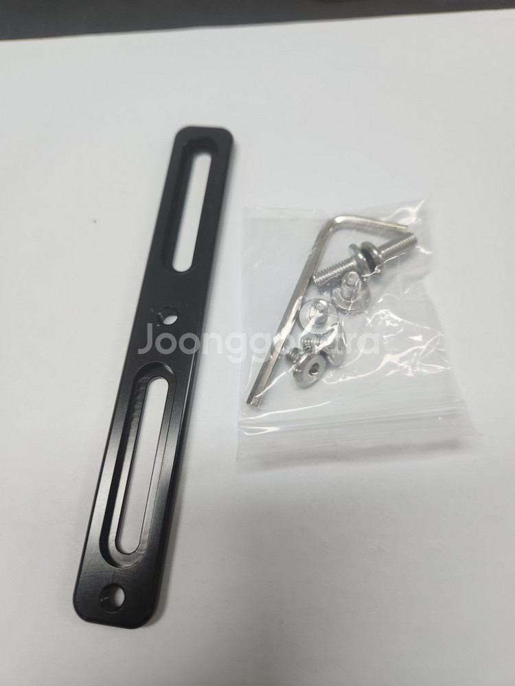프레임 사이즈가 애매해서 긴 물병이 케이지에 꼽히지 않거나 케이지 위치 조정하고 싶을때 사용하는 어댑터입니다 알루미늄소재라 가볍고 긴 나사로 자전거의 케이지 홀에 고정하고 레일 식으로 위치조정 할수 있으며 2개의 볼트 구멍에 물통케이지 고정하는 방식입니다