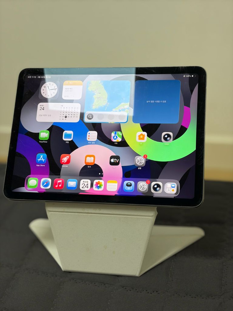 서브로 사용했던 아이패드 에어 4세대입니다. 터치아이디가 안되고 잔기스가 좀 많아서 싸게 판매합니다 실기스라 화면켜면 안보여요! 뒤판에 각인도 조그맣게 있는데 케이스 쓰고해서 신경안쓰였습니다. 대신 배터리가 94%로 에어4중 제일 높은편입니다! 배터리 거의 하루이상 사용가능해요 최신 폼팩터에 가볍게 쓰기에 가성비 최고의 아이패드라고 생각합니다. 256기가 라서 용량충분해서 오래쓸수있습니다 종이접기식으로해서 세로거치도되고 높게 가로거치도되는 케이스 같이드립니다. 꽤비싸게 샀어요! 본체와 파우치 케이스 구성입니다 하자부분제외하고는 외관도 괜찮고 다른하자 없이 잘 썼어요! 정품 애플펜슬이나 짭플펜슬도 별도로 추가가능합니다. 정품 스마트키보드폴리오도 판매중입니다! 스그색상 무난하고 예뻐요! 직거래는 서울 강서구 화곡동입니다. 택배나 안전거래택배 모두 가능합니다. 문자나 채팅 주세요
