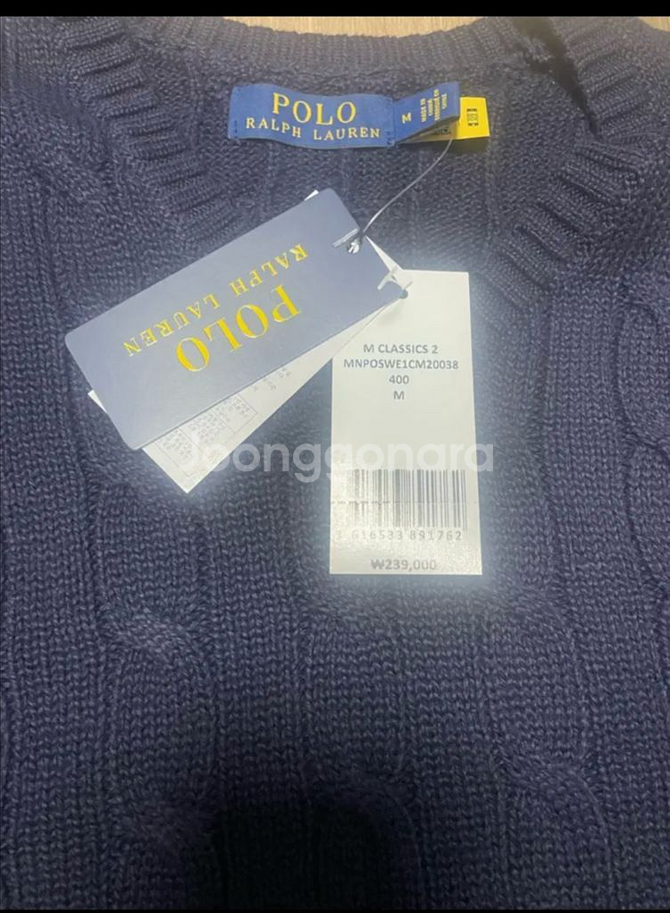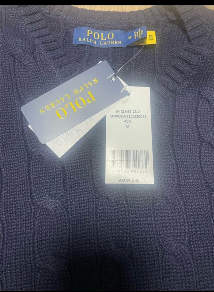 폴로 케이블 니트 코튼 스웨터 베스트(조끼) 네이비 m