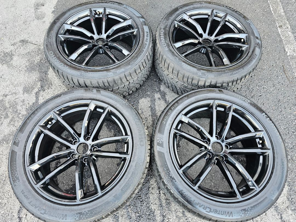 #BMW G30 662m 18인치 블랙유광 휠 윈터타이어세트 팝니다. *휠상태 : 블랙유광 작업후 미사용한 휠 입니다. 바란스 이상없이 잘 나옵니다.(사진참조) *타이어 : 사이즈는 전245 45 18, 후275 40 18 입니다. 금호 윈터크레프트 1대분으로 트레드는 80%이상 입니다.(사진참조) *위 치 : 화성시 팔탄면 푸른들판로 747 매장 오시면(장착,바란스,공기압) 무상 서비스로 해드립니다. 추가적인 문의는 별도로 연락 주시면 친절히 상담해 드리겠습니다. * 대품반납조건가격 : 현금가 70만원 입니다. (대품상태 따지지 않으며 없을시 연락주세요) * 문의 : 0 1 0 - 8 8 8 8 - 4 9 9 6 (부담없이 전화,문자 주세요)