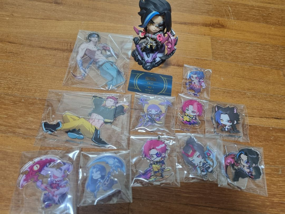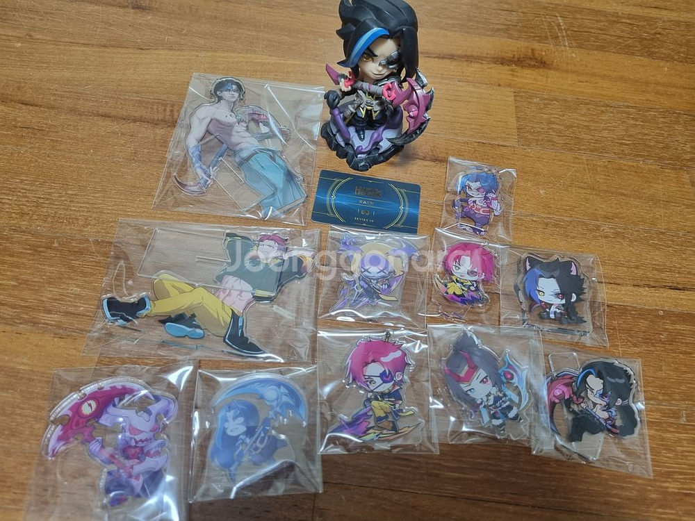 개인정보(거래정보)를 주고받는 행위는 사기에 노출될 수 있으므로 즉시 중고나라로 신고해 주세요리그오브레전드 케인 피규어 외 비공굿 굿즈들입니다. 일괄 판매합니다. 피규어는 박스 없으며 카드는 있습니다. 세월감 있으며 낫이 녹슬었습니다. 2번째 사진 확인 부탁드립니다. 먼지는 최대한 털어서 보내드리도록 하겠습니다.