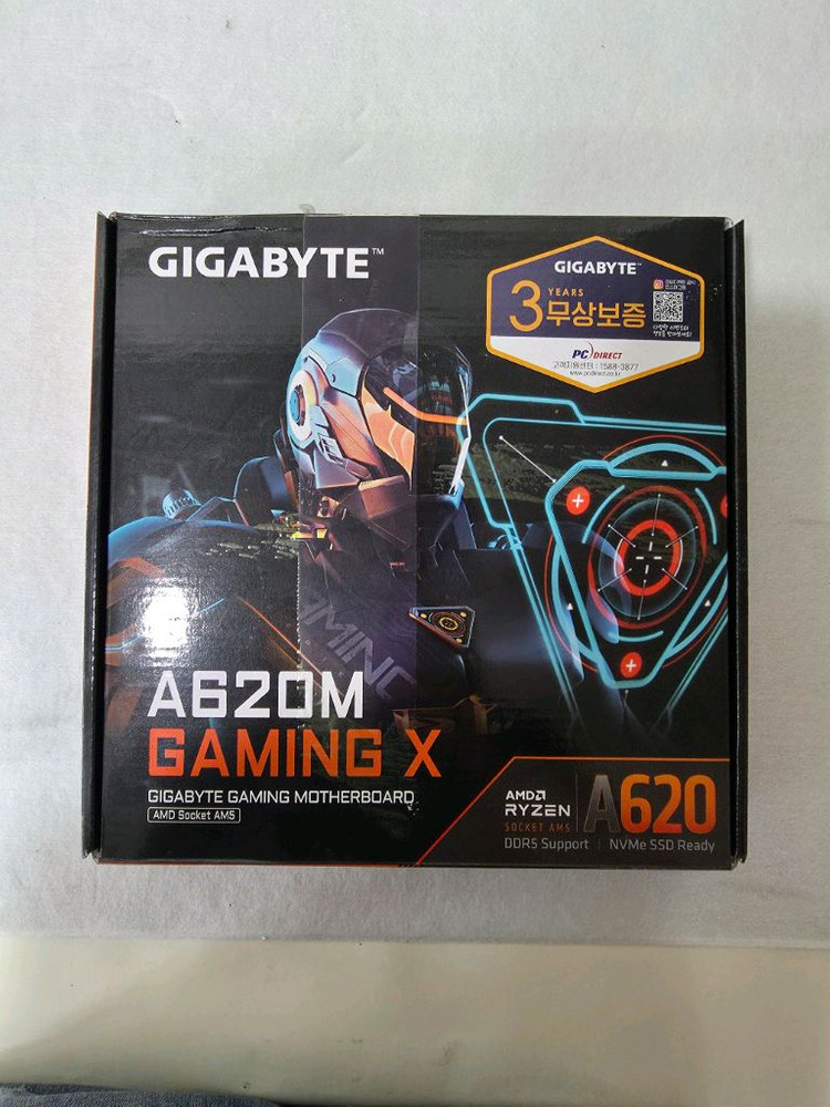 기가바이트의 라이젠 AM5 메인보드, A620M GAMING X 제품을 판매합니다. 유통사(피씨디렉트) 3년 무상 보증 스티커가 붙어있는 정품 새상품입니다. 라이젠 7000 시리즈 이상 CPU로 가성비 게이밍 PC를 조립하시려는 분들께 강력 추천합니다. A620 칩셋이지만 전원부가 튼튼하여 안정적인 성능을 보여주는 모델입니다. [주요 특징 및 사양] 소켓: AMD AM5 (라이젠 7000/8000 시리즈 완벽 지원) 칩셋: AMD A620 메모리: DDR5 지원 (램 슬롯 4개, 최대 용량 지원) 규격: Micro ATX (대부분의 케이스에 호환 가능) 주요 기능: PCIe 4.0 NVMe M.2 슬롯, 튼튼한 방열판 디자인, 기가비트 LAN 유통사: 피씨디렉트 (정품, 3년 무상 AS 보증 가능) [상품 상태 및 거래 안내] 상태: 풀박스 개봉 상품 (씰 스티커 부착 상태, 사진 확인 가능) 제조 연월: 2023년 35주차 (박스 측면 시리얼 SN2313...로 확인 가능, 최신 주차는 아니지만 보증 기간 충분합니다) 거래 방법: 직거래: 서울 금천구~강서구 택배 거래: 택배비 별도, 뾱뾱이로 안전하게 포장하여 발송합니다. 구매 의사 있으신 분은 톡 주세요!