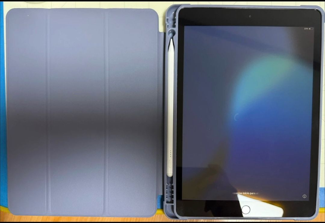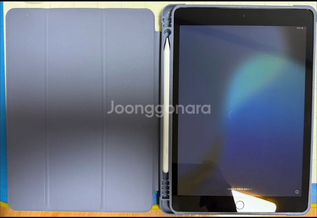 Apple iPad 8세대 모델입니다. WiFi 전용 모델이며 저장 공간은 32GB입니다. 스페이스 그레이 색상으로 설정 화면에서 확인한 배터리 성능은 94%입니다. 구성품: 아이패드 8세대와 케이스, 짭플펜슬(블루투스 연결안해도 됨) 같이 드립니다.