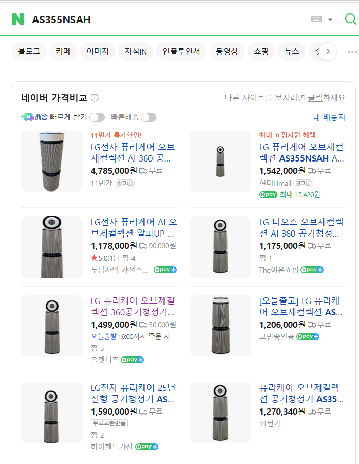 LG 퓨리케어 오브제컬렉션 360공기청정기 AS355NSAH 미개봉 새상품 판매합니다. 이번에 신혼집 입주하면서 필요도 없는데 할인율 떄문에 넣었다가, 필요없어서 판매하려고 합니다. 곧 배송될 따끈한 완전 새상품입니다! 필요하신분들은 인터넷 최저가 보다 압도적으로 금액 낮게 올리니 연락주세요!!