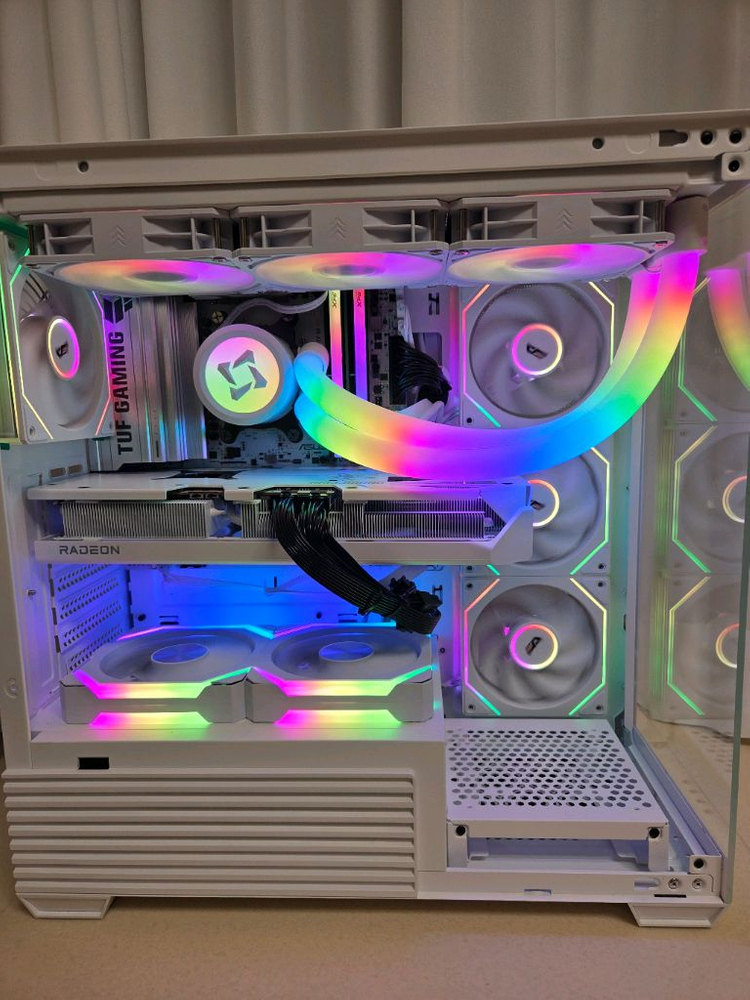 AMD 라이젠7-6세대 9800X3D (그래니트 릿지) (제이씨현 정품) 이엠텍 레드빗 ICEFULL 360 ARGB 3열 수냉 ASUS TUF Gaming B850M-PLUS WIFI7 W ADATA DDR5-6000 CL30 LANCER BLADE RGB 32GB(16Gx2) PowerColor 라데온 RX 9070 XT Hellhound Spectral White D6 16GB 솔리다임 P44 Pro M.2 NVMe SSD 1TB darkFlash DS900 PRO ARGB White_ 하단 RGB FAN 2EA 추가 FSP HYDRO G PRO 850W 80PLUS Gold Full Modular Windows 11 pro 현 가성비 좋은 사양입니다. 바로 가져가서 쓰실수 있게 말끔하게 세팅해놨습니다. 화이톤이라 실제로 보시면 상당히 마음에 드실겁니다. 램도 CL30 에 보드도 WIFI7버젼으로 상당히 메리트 있으실겁니다. 그 외에도 허접한 부품 한개도 없습니다. 거래내역 보셔도 신뢰는 가실겁니다. 무조건 직거래만 하겠습니다. 서울,파주,인천,의정부,일산,잠실,강남,용인,수원등 수도권 전지역 직거래 합니다. 가져다 드릴수 있습니다. 연락주세요.