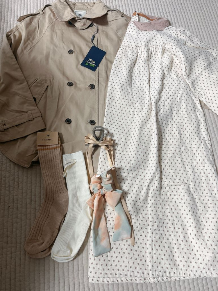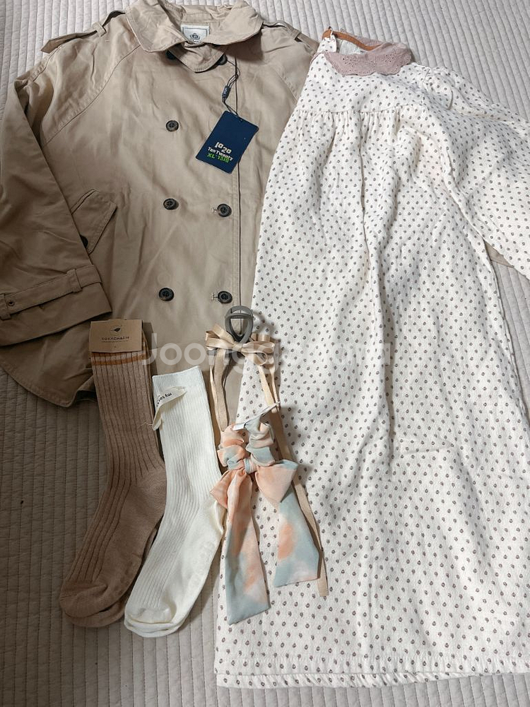 두벌 일괄 정리 둘다 사이즈 140 정도 아이 맞는 사이즈에요 트렌치 자켓은 XL적혀 있지만 130 입히는 아이 너무 커서 정리합니다~다른 140옷과 사이즈 비교해 보고 올립니다 1. 드마비 잔꽃 원피스140: JM표기이니 140부터 여유잇게 맞을 것 같아요/ 택채 새옷 2. 트렌치 자켓 망토 스타일140: 집에서 시착만 한번 해본 새옷 입니다 리본집게핀 6-7천원 정도 샀던거랑 다른것들 같이 선물로 드리겠습니다