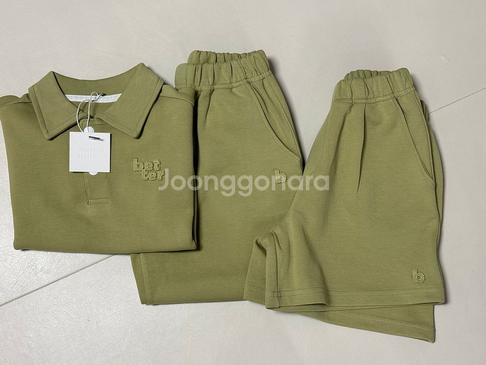 새상품 므므브 카라 상하 3pc 긴팔카라 긴바지 반바지 상하복 세트 세이지 그린 L