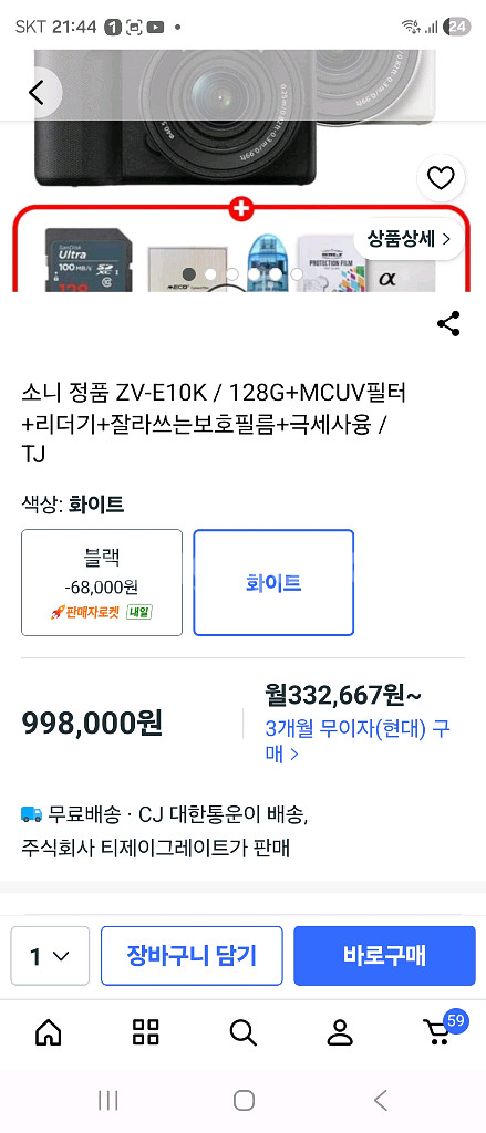 소니 정품 ZV-E10K 미러리스 카메라 화이트 색상입니다 256GB 메모리 카드와 함께 제공됩니다 리더기와 보호필름도 포함되어 있어 바로 사용하기 좋습니다 작지만 강력한 성능으로 일상을 새롭게 담아보세요 최대 4K 30p 동영상 촬영을 지원하며, USB 스트리밍 기능으로 편리하게 즐길 수 있습니다 정품 보증서와 구성품 모두 포함되어 있습니다 제품 구성: - 소니 ZV-E10K 카메라 본체 (화이트) - SELP1650 렌즈 - NP-FW50 배터리 - 충전기 및 전원 케이블 - 넥스트랩 - 윈드스크린 - 256GB SanDisk 익스트림 프로 SD 카드 - USB-C 케이블 - 설명서 및 보증서 보증 기간 만료일: 2027년 02월 04일 사용감 거의 없어요.