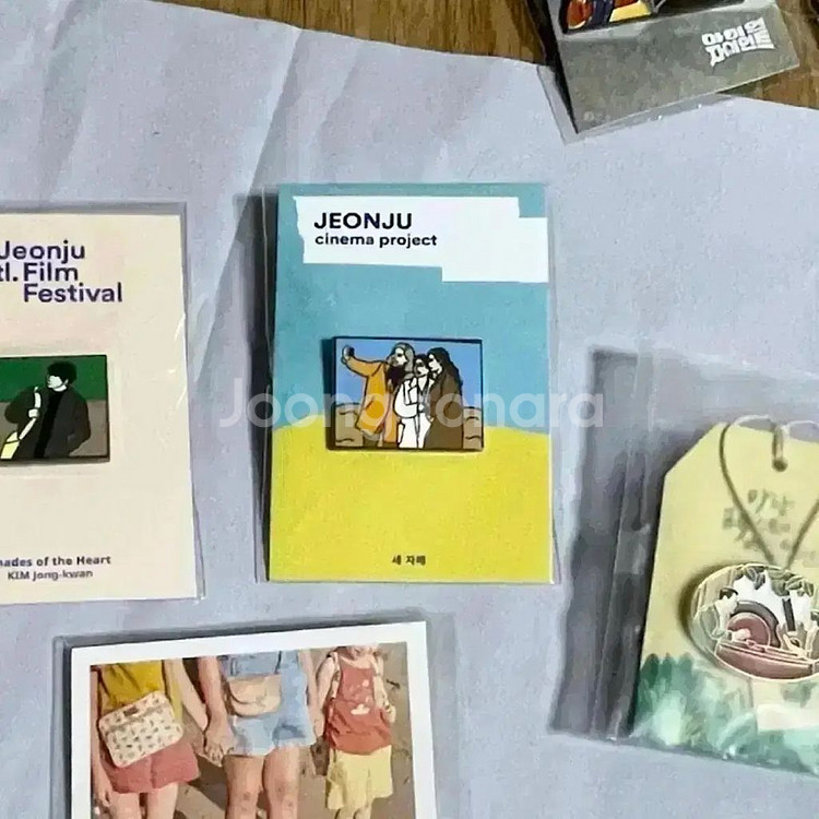 영화 세자매 전주국제영화제 뱃지(소시민 제작) 18000 필름 포스트카드 4000 노트 6000 씨네큐 A3 포스터 10000 렌티큘러 포토카드 3종 세트(미개봉) 5000 패키지 뱃지 완료 알뜰반값택배 2500 / 일반택배 4500 포장 안전하게 보내드립니다