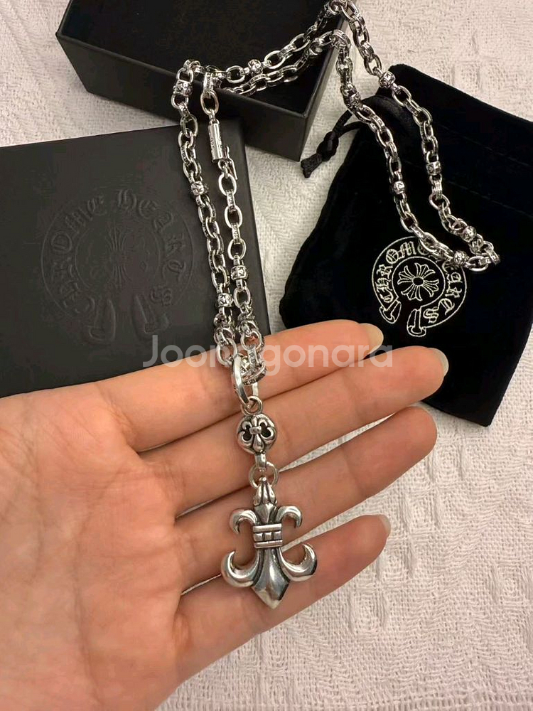 개인정보(거래정보)를 주고받는 행위는 사기에 노출될 수 있으므로 즉시 중고나라로 신고해 주세요정품 플뢰르 드 로즈 펜던트가 달린 실버 체인 목걸이예요. 박스와 파우치 포함된 완전 세트로 상태 양호합니다. 클래식한 디자인으로 오래 착용하기 좋아요.
