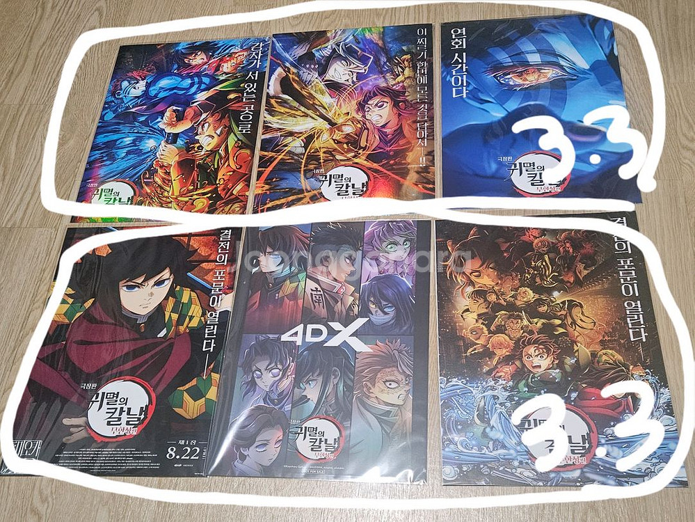 귀멸의칼날 극장판 특전 판매합니다 ✅️5주차+7주차+500만 기념상영회(2장) 일괄 33000원 ✅️4DX+대결상영회+500만 기념상영회(2장) 포스터 33000원 ✅6주차 클리어 카드+스티커/7주차 클리어 색지 기유, 시노부/캐스트북 일괄 30000원 ✳️일괄 구매 외에 펼쳐서 보내는걸 원하시는분은 따로 말씀해주세요 배송비 추가합니다 ✳️대결상영회 윗부분 하자⭕️ 2번째 사진 참조 일괄 운포 90000원