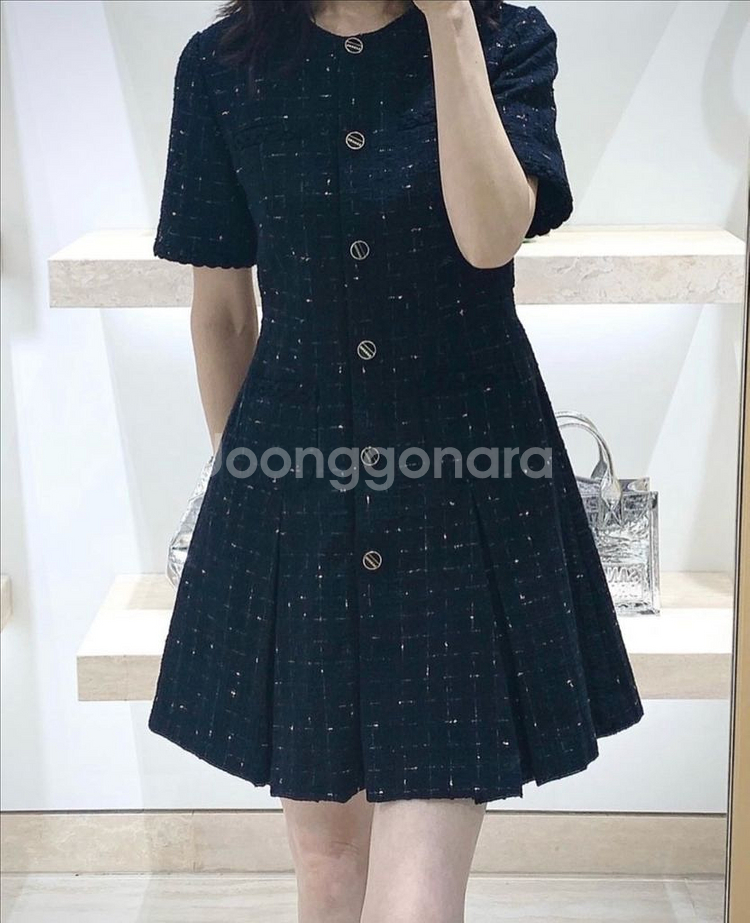 산드로 트위드 반팔 원피스입니다 블랙 색상이고 사이즈는 38입니다 55반 66정도 되는것 같아요 총장 87.5 가슴단면 43.5 작년 아이디룩몰 구매, 1회 착용 후 보관중에 있습니다. 여성스러운 스타일이며 하객룩에 딱인거 같아요 중고 특성상 환불은 불가하며 꼭 사실분만 연락주세여 서로 매너거래해요