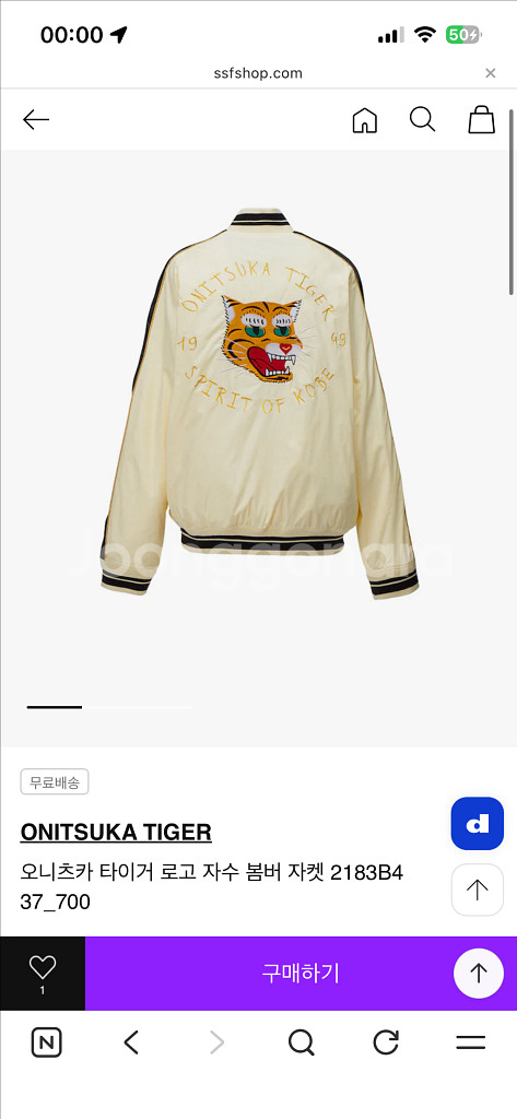오니츠카 타이거 로고 자수 봄버 자켓