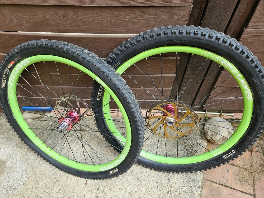 MTB용 그린 컬러 휠셋과 서스펜션 포크 세트입니다. 사용감은 있지만 기능상 문제없이 잘 작동해요. MTB 업그레이드 하시는 분께 추천드립니다! 26인치 킹휠셋 과 같이 사용하던 카시마 탈라스샥 1]킹휠셋 앞 20큐알 뒤 일반큐알 세월흔적있으나 구름성 매미소리 좋음>>28만 착불 2]폭스 탈라스 카시마샥 20큐알용 >>22만 착불 일괄 직거래구매시>>>45만에 드립니다