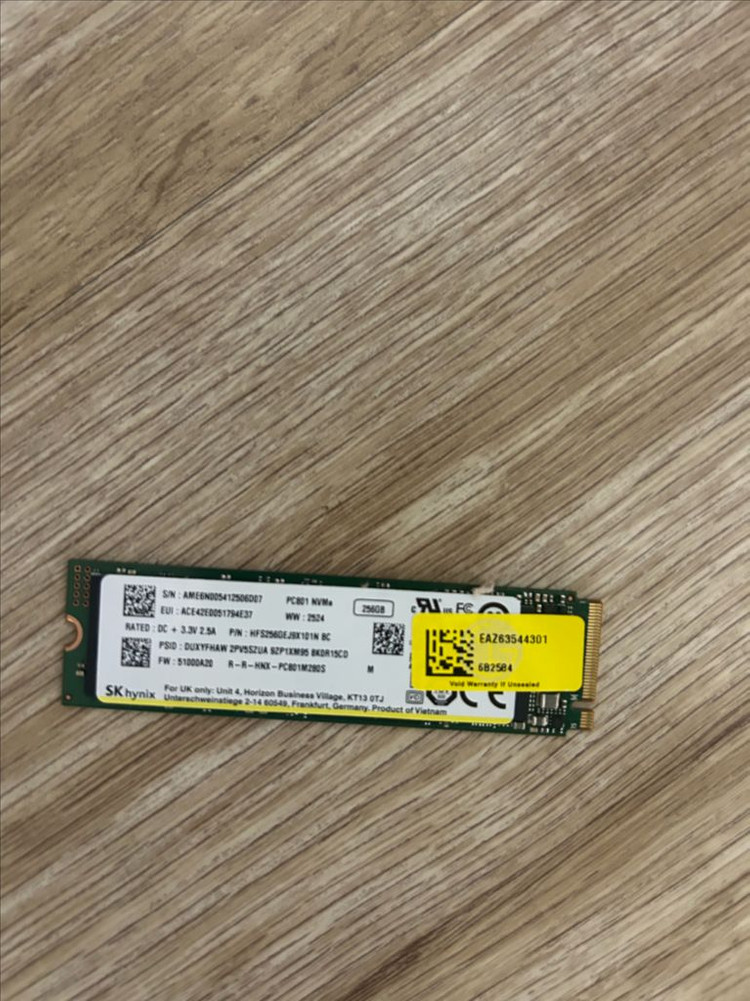 제품명 : SK하이닉스 PC801 NVMe SSD 256 설명 : 노트북 구매하여 디스크 교체하고 나온 제품으로 거의 새상품입니다. 초기화 완료이구요 - 빠른 속도로 쾌적한 사용 환경을 제공합니다 - 안정적인 데이터 관리로 안심하고 사용할 수 있습니다.