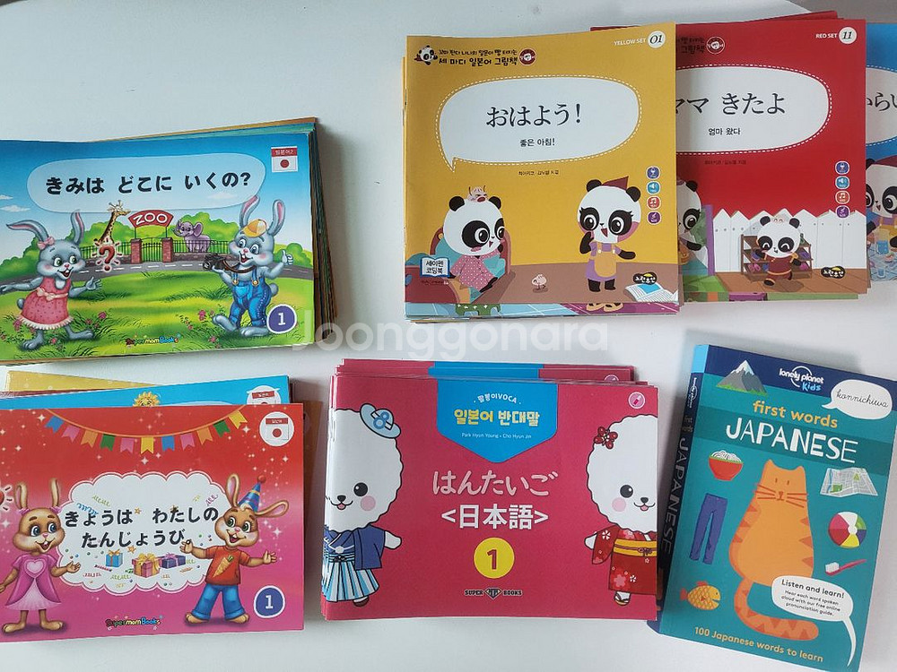 수퍼맘 ●일본어● ㅡ팔봉이 패턴회화2.3.반대말.사전.ㅡ일괄 팔봉이 패턴회화 2.3 팔봉이 반대말ㅡ1권 앞부분 사용감있고 나머지 안봤어요. 론리플래닛 그림사전ㅡ음원스티커부착 (말빵세일본어는 덤입니다.자료x) ※정리차원이라 언어별 일괄거래만 가능합니다. ((자료 메일))