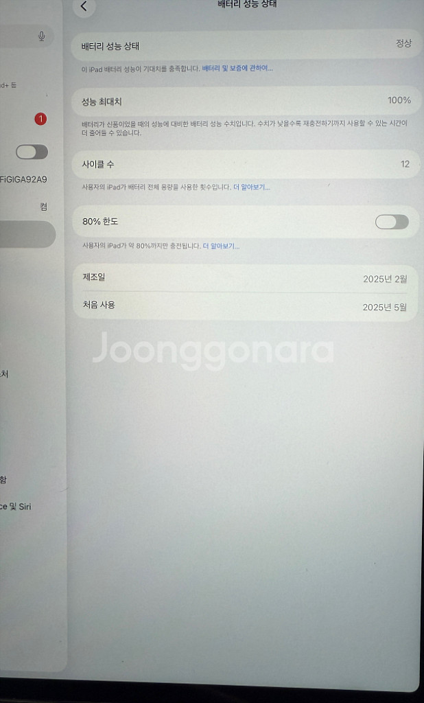 아이패드 에어 13 M3 Wi-Fi 128 스타라이트 배터리 성능은 100%이며, 사이클 수는 12회입니다 케이스도 같이 드려요 상자 있습니다 앞뒤옆 필름도 바로 붙여놔서 기스나 하자 없습니다. 채팅먼저주세요