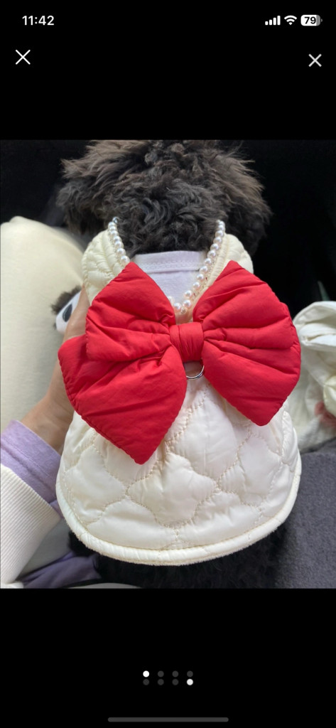 XS. L. 사이즈 각각 1장씩 있어요!! 새상품인데 사놓기만 하고 아껴두고 안입혔더니;; 강아지가 갑자기 커서 너무 꽉껴서 안맞아서 내놓습니다 3만원 가까이에 구입했구요 하네스도 하고싶어서 고리는 제가 달았구요! 도톰해요! 가슴단면15 총기장24 X스몰사이즈구요 사이즈는 꼭 기존 입히시던옷 재보셔서 참고해주세요 L. 가슴41 총기장34 새상품