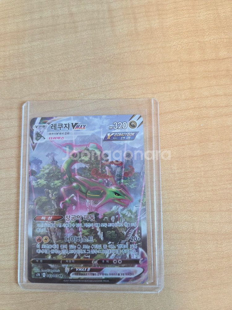 개인정보(거래정보)를 주고받는 행위는 사기에 노출될 수 있으므로 즉시 중고나라로 신고해 주세요포켓몬카드 레쿠쟈 VMAX 카드입니다. 투명 케이스에 보관되어 있어 상태가 양호해요. 포켓몬 수집하시는 분께 추천드립니다!