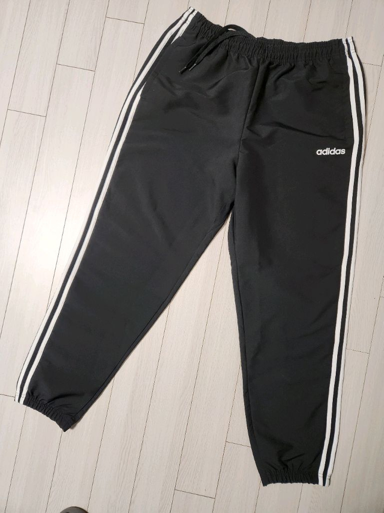확대새상품급)아디다스 에센셜 3S 윈드러너 트레이닝 우븐 조거 팬츠 DQ3100 사이즈xxl 스포츠웨어/하의/바지/남성용/부가기능: 방풍/긴바지/색상: 블랙 /출시가: 65,000원 여러 중고사이트에도 같이 판매하고 있어서 삭제되면 팔린거에요~ 오염 하자 없이 깨끗해요^^ 세탁해뒀어요
