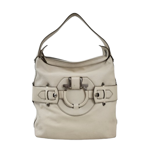 정품 페라가모 간치니 벨티드 가죽 숄더백 입니다. 페라가모의 전통적인 간치니 로고 장식이 포인트로 돋보이는 멋진 가방이에요. 산뜻한 아이보리 컬러로 깔끔하고 차분한 이미지를 줍니다. 호보 느낌의 숄더백으로 수납공간 너무 좋아요. 일반적인 모서리등 약간의 사용감 빼고는 전체적으로 사용하시기에 무난한 컨디션 유지중입니다. 착한가격에 명품 페라가모 간치니 벨티드 가죽 숄더백 얼른 데려가세요! 사이즈 : 가로 30 세로 29 바닥폭 13 cm