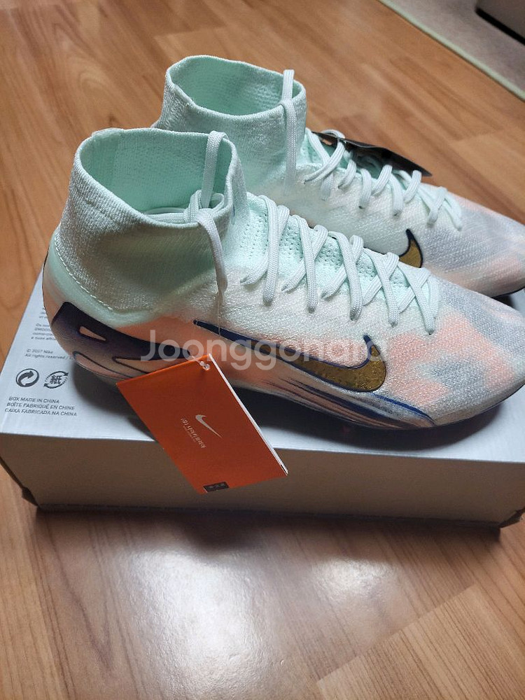새상품이에요. (사이즈255,280) 발매가339,000원 택 달린 나이키 슈퍼플라이 10 엘리트 머큐리얼 드림 스피드 FG 하이탑 클리트 새상품입니다. 민트색 하이탑 디자인이 아주 예뻐요. FG 스터드라 잔디 구장에서 최고의 퍼포먼스를 낼 수 있습니다. 박스컷상품이라싸게팔아요