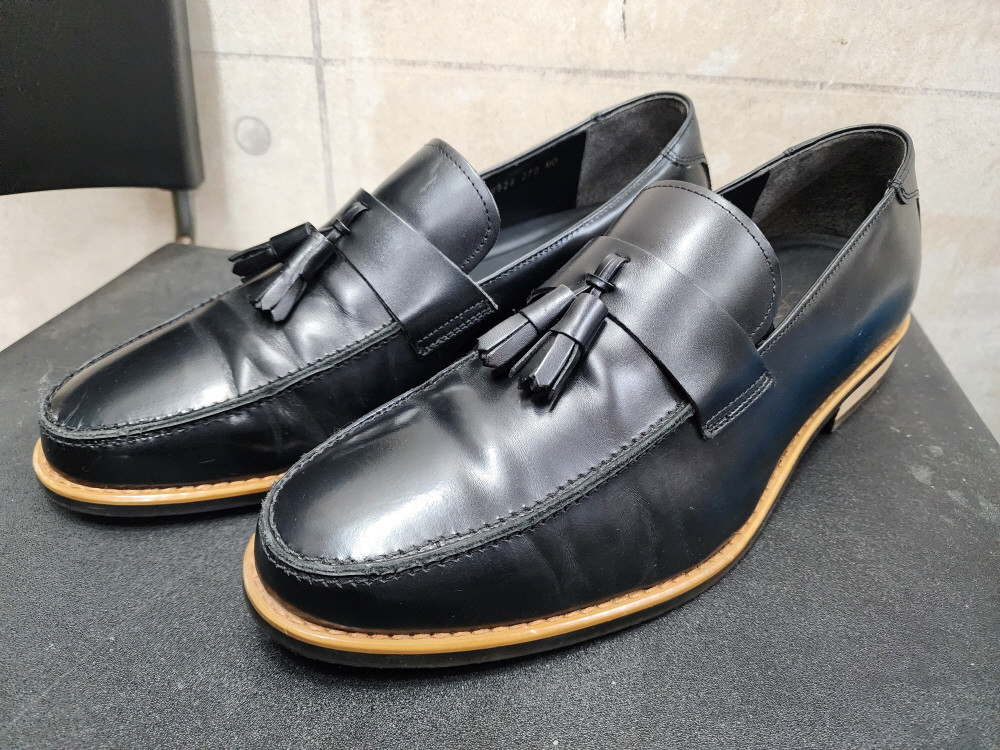 블랙 가죽 남성 로퍼예요. 태슬 디테일이 포인트이고 전체적으로 깔끔한 상태입니다. 270사이즈로 정장이나 캐주얼 모두 잘 어울려요. 문의사항은 반드시 채팅 보내주시면 빠르게답변드리겠습니다 (270)엘칸토 정품 남성 소가죽 로퍼 정장구두/270mm/상태우수 ▶브 랜 드 : 엘칸토 ▶사 이 즈 : 270mm *신체 사이즈 알려주셔도 몰라요 실측 확인 부탁드려요 ^^ *가격흥정에는 답장 드리지 않아요 죄송합니다 ㅜㅜ *중고제품 특성상 교환 환불 불가합니다 ▶상 태 : A+ ***제품상태*** A++(미착용이나 새제품) A+ (중고제품이지만 상태 좋고 사용감이 거의없음) A (중고제품 약간의 오염정도) B (중고제품 작은상처나 오염) C (중고제품 변색이나 심한상처 오염 작업복 추천제품) *배송안내* -모든 상품의 배송은 CJ대한통운으로 배송이 됩니다. -월 ~ 금요일 오후 5시 이전까지 입금이 확인 된 경우 당일발송 합니다. -도서/산간 지역은 2~7일 정도 지연 및 추가운임비 3,000가 발생할 수 있습니다. ※특이사항 (모든 구제 제품은 사용감 조금씩 있습니다) * 상태좋음/미세오염/미세상처