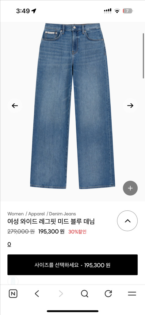 캘빈클라인 여성 와이드레그진 25사이즈 새상품