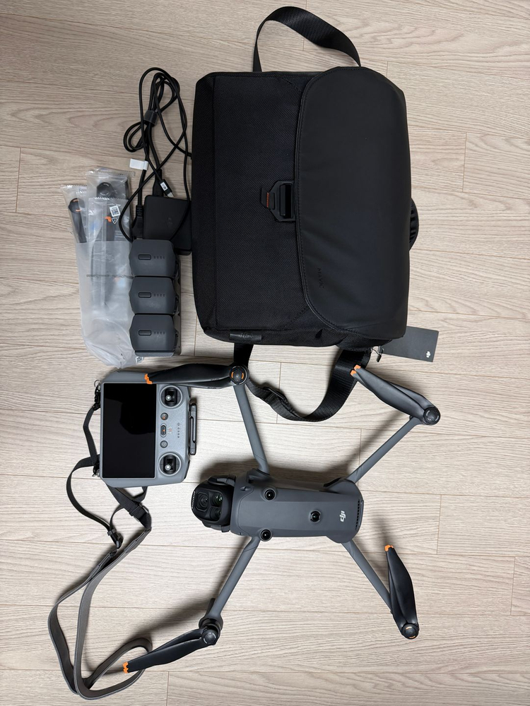 드론 플라이모어 콤보 세트로 드론 본체, 컨트롤러, 배터리 4개, 충전기, 전용 가방 등 모든 구성품이 포함되어 있어요. 상태 양호하고 바로 사용 가능합니다. 캐어 리프레쉬 1년 가입제품 항공촬영 취미나 업무용으로 완벽한 세트예요! 경남인근 직거래 가능합니다.