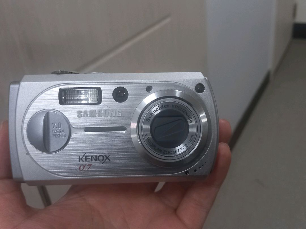 개인정보(거래정보)를 주고받는 행위는 사기에 노출될 수 있으므로 즉시 중고나라로 신고해 주세요삼성 케녹스 알파7 레트로 디지털 카메라. 구성품. -카메라 본체 -충전기 (※ 충전지는 없어요 ※ ) -케이블 -파우치 -256MB SD 카드 충전지가 없어서 작동확인은 일반AA건전지로 했지만 빨리 닳는것 같아요.