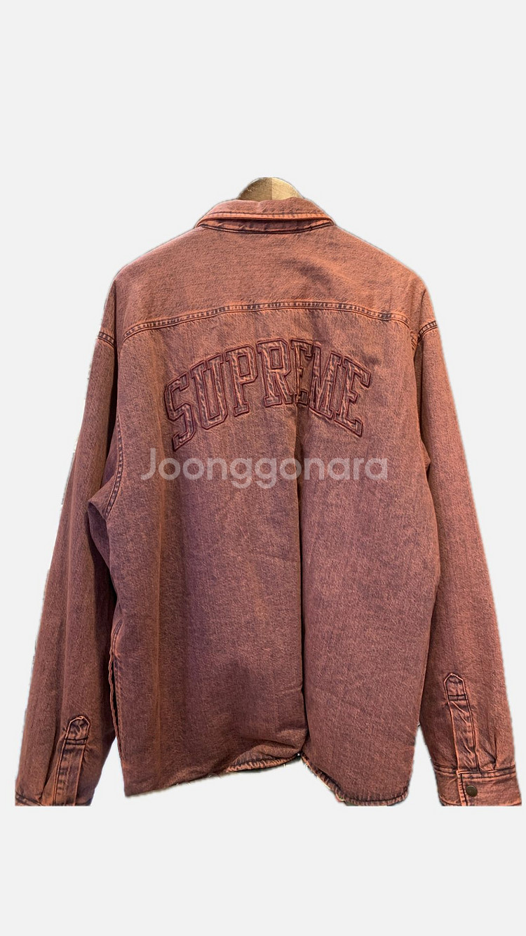 * Supreme Acid Wash Denim Shirt * 이름: Supreme Denim Shirt (Burgundy) * 가격: ₩379,000 * 상세 사이즈: * 어깨: 50cm * 가슴: 60cm * 소매: 63cm * 총장: 75cm > [안내 사항] > * 염색 및 생활감 있을 수 있습니다. 구매 후 교환 및 환불은 불가합니다. > * 화면 해상도에 따라 색이 다르게 보일 수 있습니다. > [배송 정보] > * 2개 이상 구매 시 무료배송 > * 일반 배송: 5,000원 > * 제주도: + 3,000원 추가 정품 버건디 컬러 데님 셔츠예요. 뒷면에 로고가 새겨져 있고 앞면 포켓 디테일이 멋스러워요. 상태 양호한 중고 제품입니다.