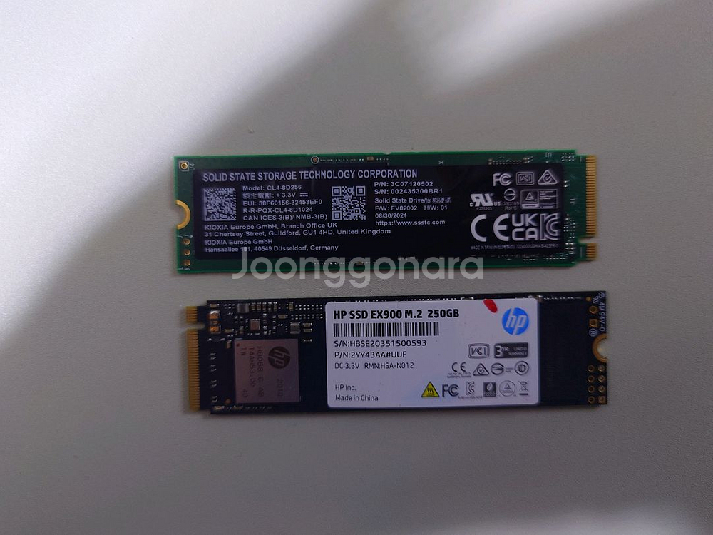 키오시아 CL4-8D256 256GB SSD와 HP EX900 250GB SSD를 판매합니다 개당 가격이며 일괄시 택포로 드립니다