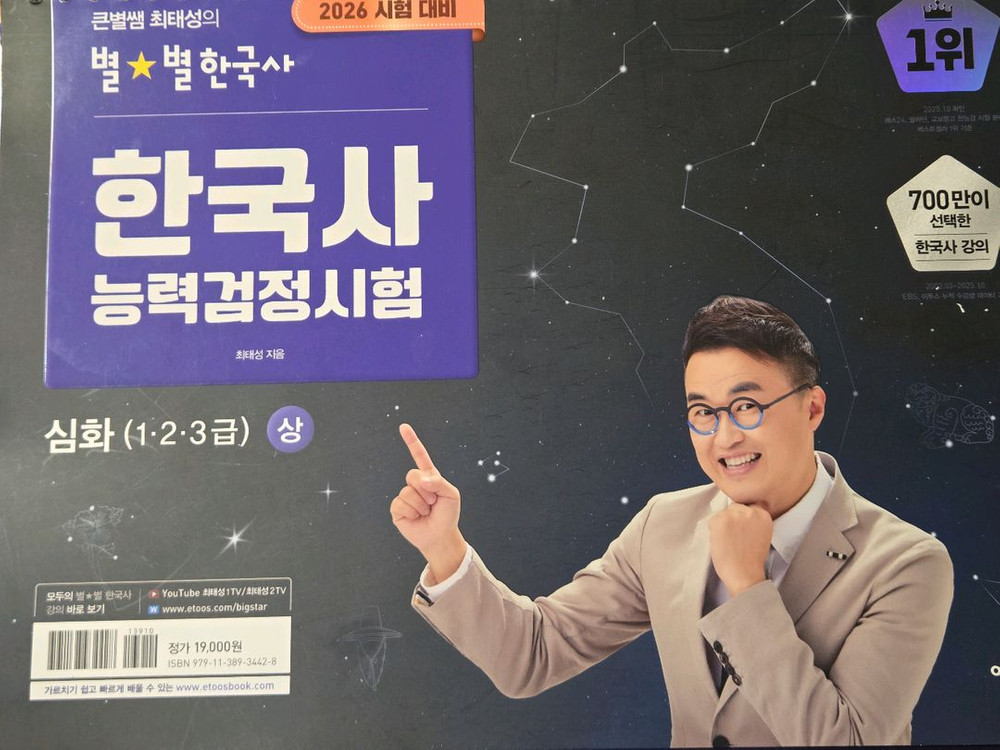 일괄 택포 4만 * 안전거래 택배별도 택배 +3000 2026 큰별쌤 최태성의 별★별한국사 기출 500제 한국사능력검정시험 심화 (1, 2, 3급) / A+ / 13,000원 2026 큰별쌤 최태성의 별★별한국사 한국사능력검정시험 심화 (1, 2, 3급) 하 / A+ / 12,000원 2026 큰별쌤 최태성의 별★별한국사 한국사능력검정시험 심화 (1, 2, 3급) 상 / A+ / 12,000원