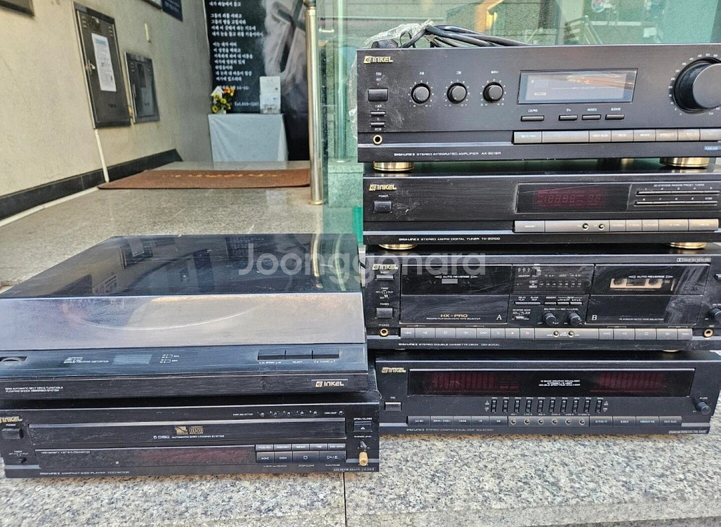 90년대 명기 인켈 오디오 풀세트입니다. 레트로 감성 인테리어와 실사용 모두 좋습니다. 앰프 (AX-5015R) 턴테이블 (PS-1390) CD플레이어 (CDC-5010R) 더블 카세트 데크 (DD-4010C) 그래픽 이퀄라이저 (EQ-5010C) 라디오 튜너 (TX-2010C) 작동여부는 미확인입니다. 클래식한 디자인의 레트로 오디오 장비를 찾으시는 분께 추천드립니다.