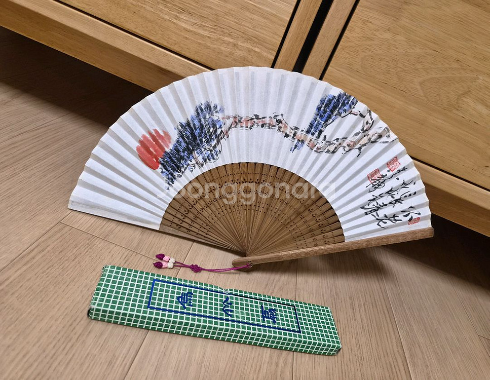 부채길이 약 22cm 케이스 22.5× 4.5× 1.5cm 해와 소나무 그림이 그려진 고급스러운 접이식 부채입니다. 섬세한 그림과 부드러운 색감이 고급스러움을 더합니다. 부채 케이스도 같이 드립니다. 몇 번 사용하지 않아서 미세한 세월감 있으나 하자 없고 상태 깨끗해요. 전시회에서 꽤 비싼 가격에 구매했습니다. 저렴한 가격에 멋진 작품 소장하세요.^^ ■가격제안 받지 않아요*** ■매일 비울 물건을 찾아보고 깨끗한 상품들만 올리니까 판매글을 올리는 즉시 팔리는 경우가 많아요. 물건이 먼저 팔리기 전에 바로 연락주세요~^0^ ■직거래는 오셔서 물건을 꼼꼼히 보신 뒤에 구매 결정하시면 되세요. ■택배 거래는 배송비 4,000원, 반값택배는 2,700원입니다. ■구매 후 교환, 환불은 어려운 점 이해 부탁드려요. ■24시간 언제든 문의 주시면 확인하는 대로 답장 드릴게요.^^ #부채 #접이식부채 #접선부채 #대나무부채 #소나무그림