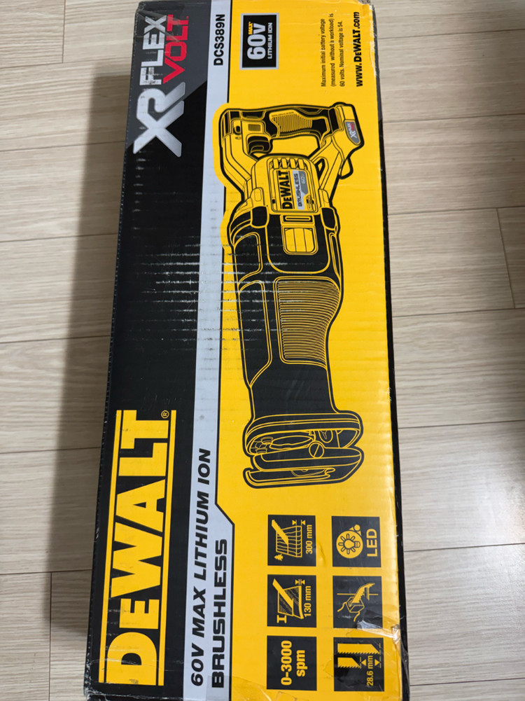 디월트 60V MAX FLEXVOLT XR 브러쉬리스 충전 톱 본체입니다 DCS389N 모델 미사용품입니다 고성능 모터 업그레이드 및 전자 모듈, 소프트웨어 업그레이드로 모터 성능 향상과 더 견고해진 내구성을 자랑합니다 소프트웨어 업그레이드로 최대 19% 향상된 파워를 경험하실 수 있습니다 (최대 출력 1874W, 최대 속도 3000SPM) 저진동 기어박스 설계로 무리 없는 작업이 가능합니다 LED 라이트, 피치 숲, 원터치 클램프, 저진동 설계 등 다양한 기능이 탑재되어 있습니다