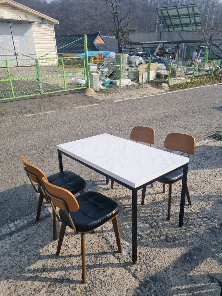 개인정보(거래정보)를 주고받는 행위는 사기에 노출될 수 있으므로 즉시 중고나라로 신고해 주세요1200 700사이즈 테이블1 + 의자4 한세트당 13만원 총 9세트 보유중(세트로만판매) 테이블의자세트 상태 양호하며 의자 묵직하고 견고합니다 중고상품으로 미세흠집 있을 수 있습니다. 안산 화정동 직거래 가능 용달거래 선호 합니다.