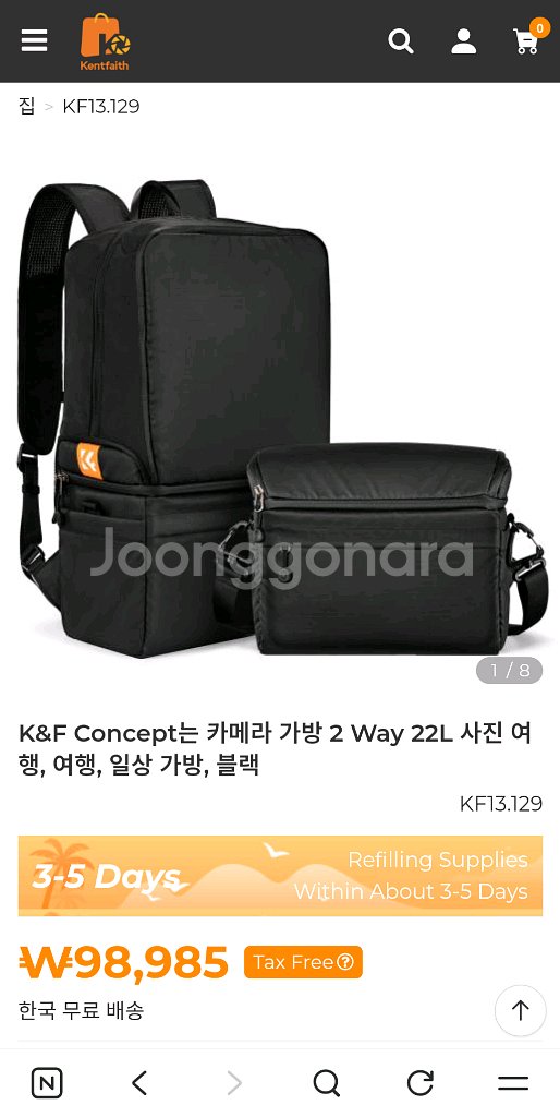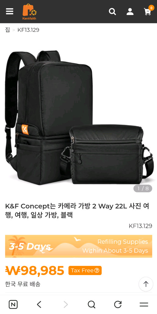 K&F Concept 브랜드에서 나온 카메라가방입니다. 크로스백으로 사용하다가 짐이 늘어날 경우 백팩으로 변신! 도 가능한 모델이라서 굉장히 유용합니다. 특히 여행에서 사용하고 아기용품등을 가지고 다녀야 하느 아빠사진사에게 유용합니다.