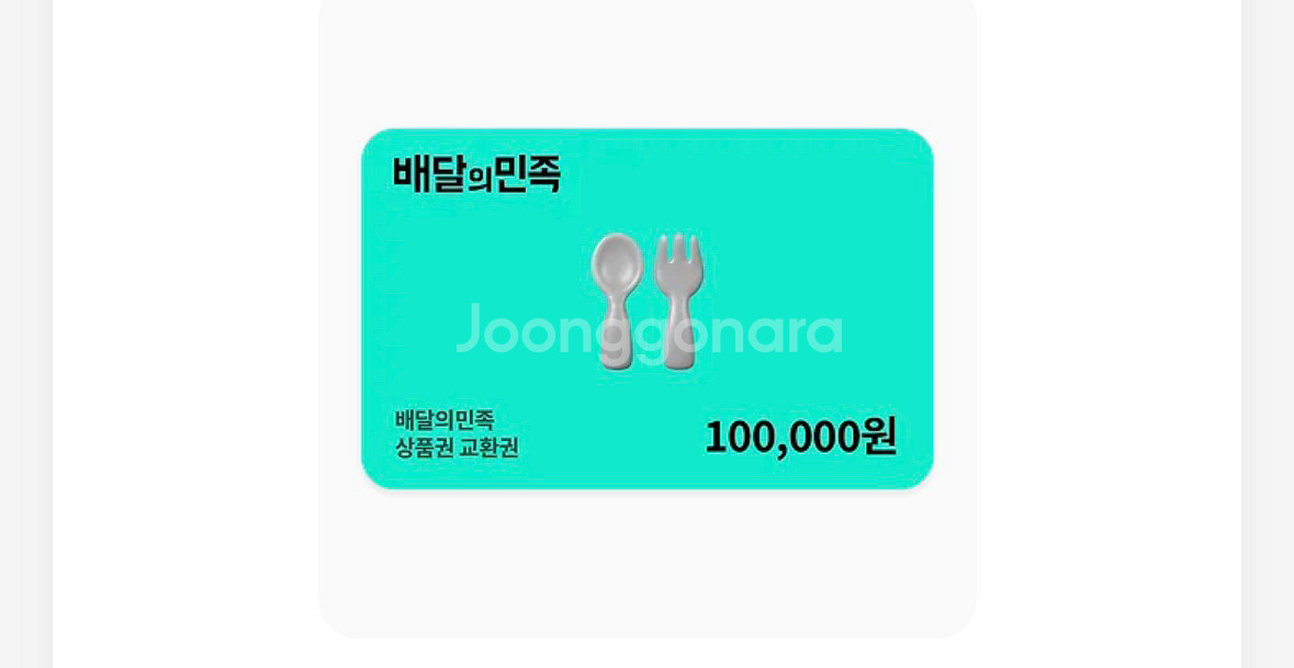 개인정보(거래정보)를 주고받는 행위는 사기에 노출될 수 있으므로 즉시 중고나라로 신고해 주세요배달앱에서 사용 가능한 10만원 상품권이에요. 유효기간 확인하시고 구매해주세요! 9만원에 드립니다