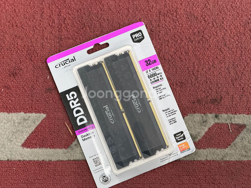 마이크론 크루셜 DDR5-6000 CL36 프로 32GB(2 X 16GB) 미개봉 새제품 판매합니다. 경남 창원 직거래, 전국 택배 거래 가능합니다.