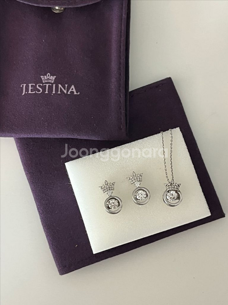 제이에스티나 실버 티아라 귀걸이 목걸이 세트