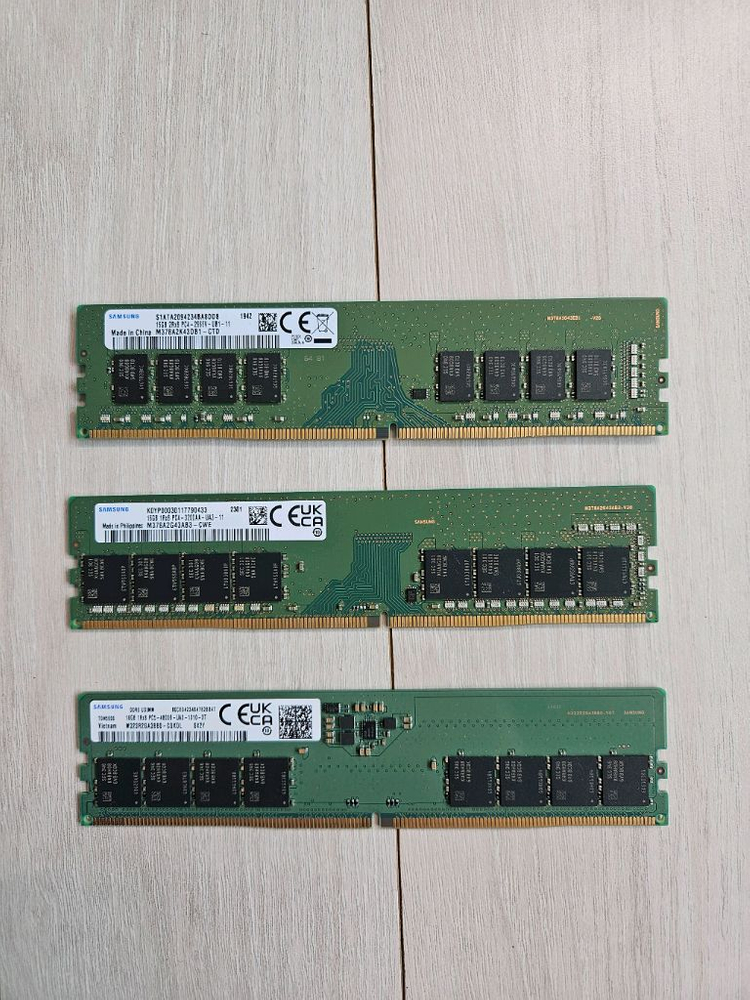 컴퓨터 램증설 하면서 쓰던거 판매합니다. ddr4 는 하나는 2666,하나는 3200 ddr5 는 4800 이며 모두 16기가입니다