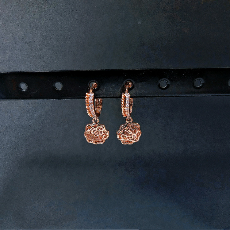 제가 파는 목걸이, 팔찌, 귀걸이랑 같이 하시면 에눌💸 해드려요 18k 고온고압법 금도금이라 알러지, 변색없이 쓸 수 있습니다 침은 925실버 은침입니다 링부분에 밋밋하지않게 지르코니아가 포인트로 있고 예쁜 장미 디자인이 새겨진 링귀걸이에요 우아한 분위기가 나고 봄에 하기 딱 좋은 예쁜 로즈골드 색상이랍니다 데일리로 하기 너무나 좋은 디자인에 아무데나 잘어울려서 코디하기도 편해요 크기도 적당히 작아서 귀엽고 원터치라서 착용도 편합니다 크기 가로 1cm 세로 2cm